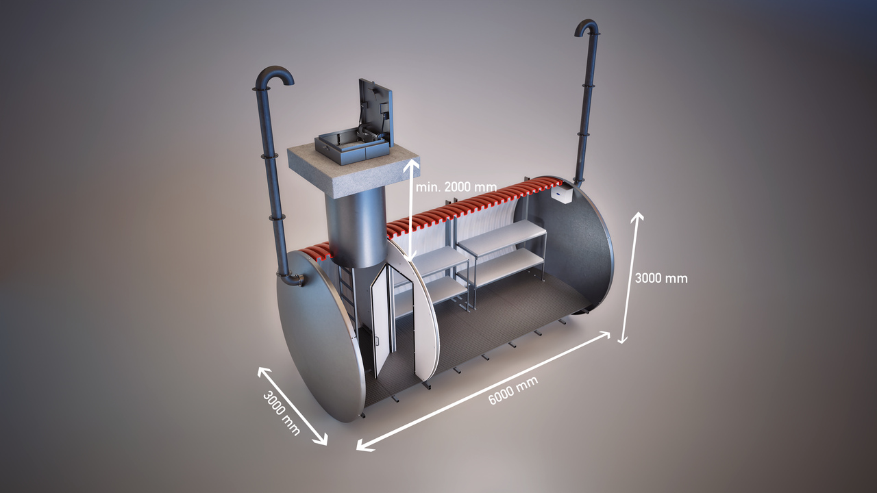 Jest to schron o średnicy 300 mm i długości 6000 mm wykonany z